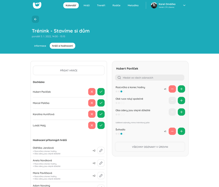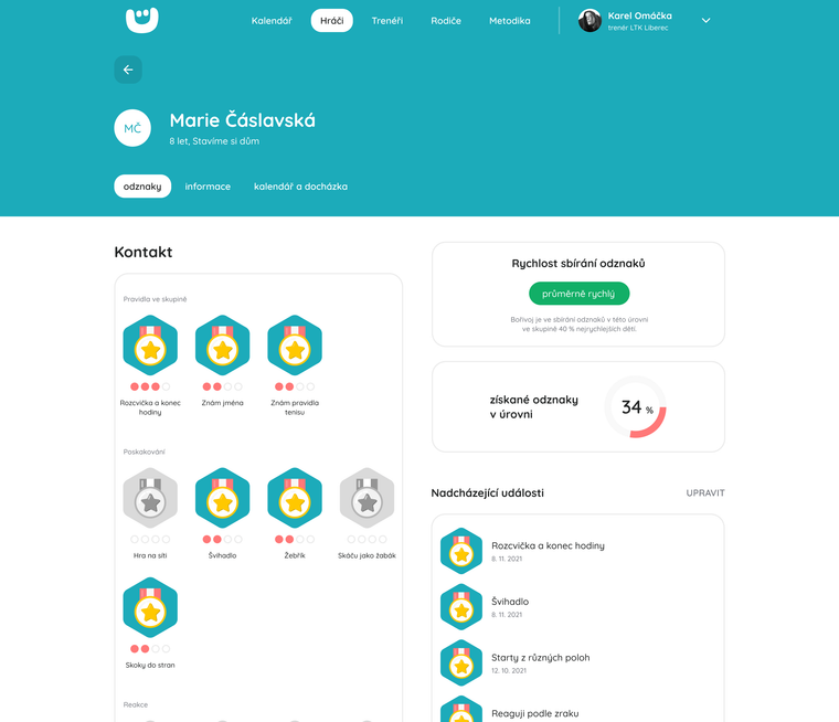 „Děti nálepky milují! Odměna ve formě odznaku je motivuje. Těší se na každý nový úkol, cvik. Navíc mají všichni přehled o plnění tréninkového plánu.“